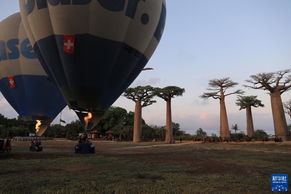 當日,在馬達加斯加穆龍達瓦猴面包樹大道,來自瑞士、法國等國的熱氣球旅行愛好者于日出時分乘坐熱氣球升空。猴面包樹與熱氣球構成了一道獨特的風景。