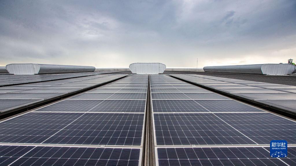 這是11月7日在泰國春武里府拍攝的工廠屋頂光伏發電項目的光伏發電板。