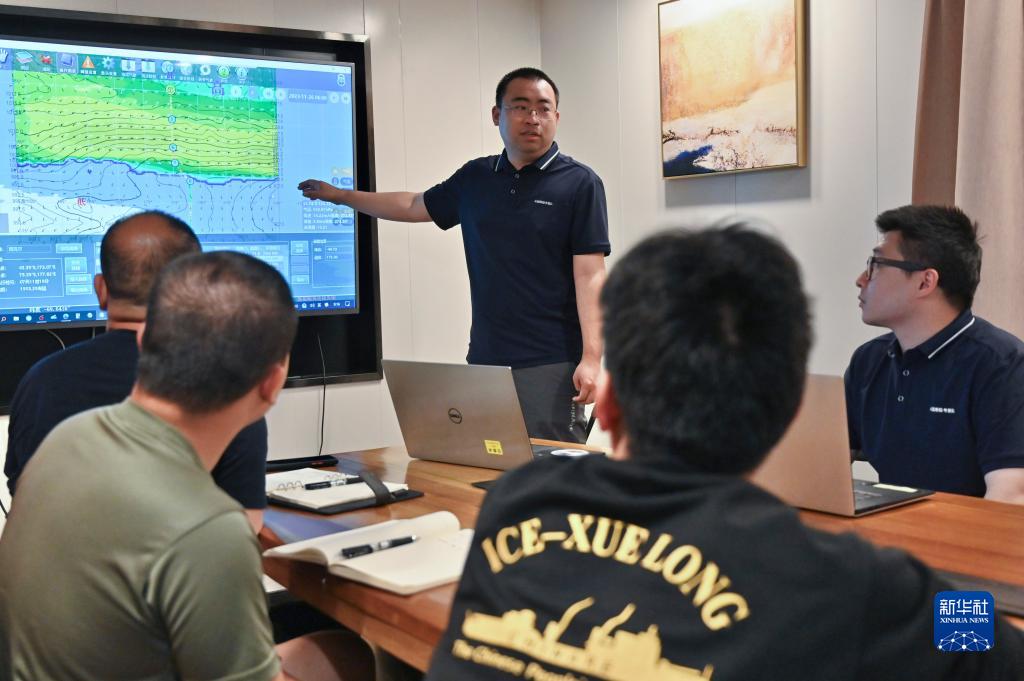 11月23日,“雪龍2”號氣象保障員李競時介紹西風帶氣象情況。