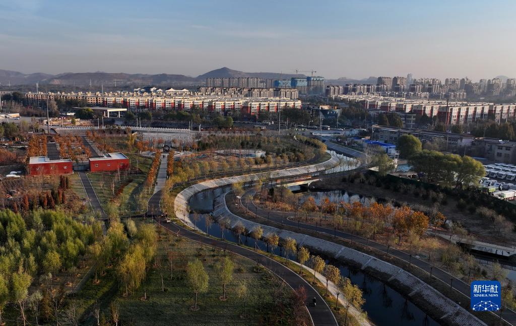 這是11月26日拍攝的唐山市古冶區石榴河濕地公園景色(無人機照片)。