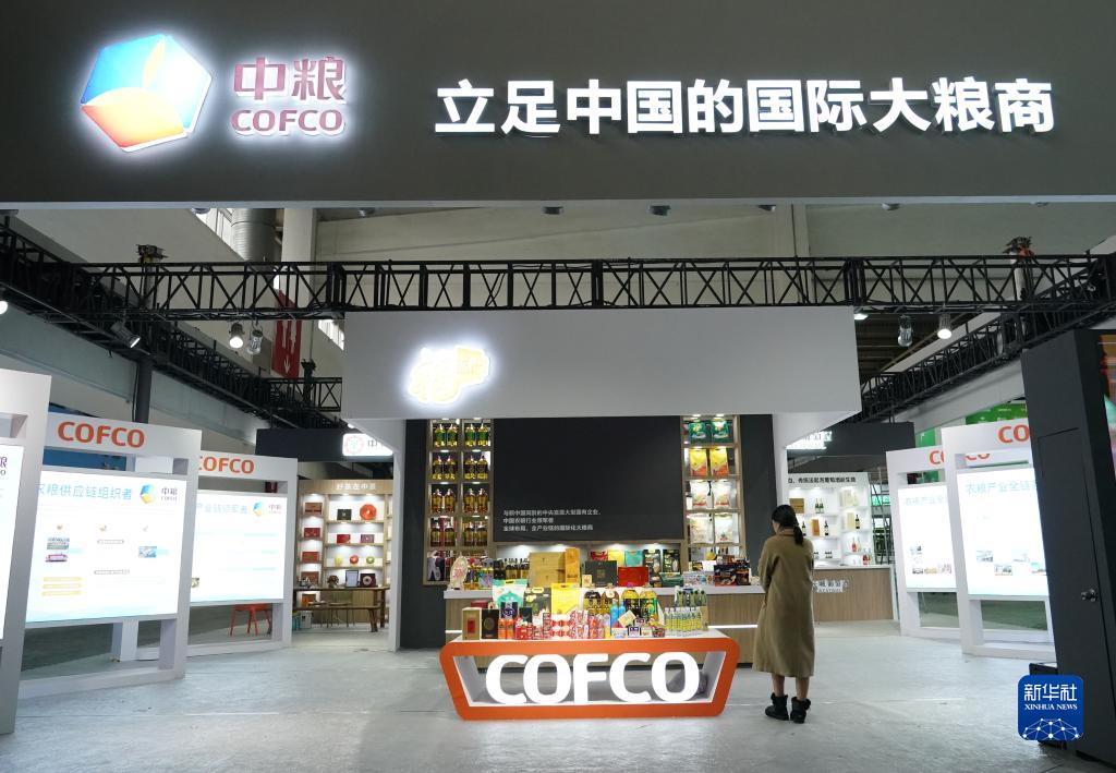 11月26日在中國(guó)國(guó)際供應(yīng)鏈促進(jìn)博覽會(huì)綠色農(nóng)業(yè)鏈展區(qū)拍攝的中糧集團(tuán)展位。