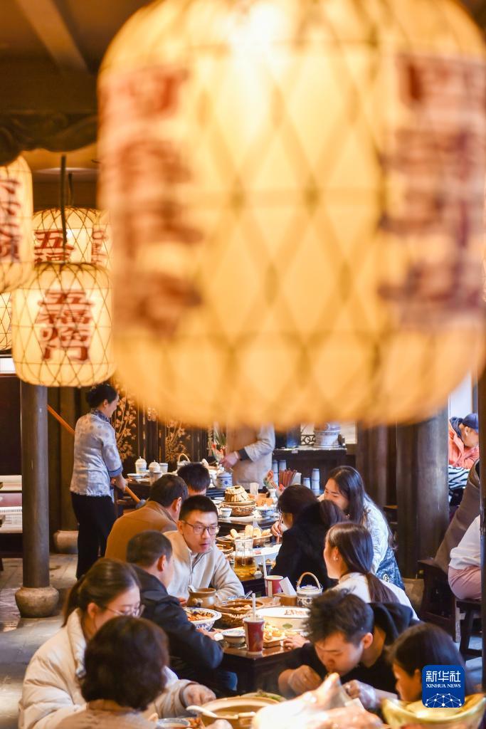 11月26日,人們?cè)诮K省南京市老門(mén)東景區(qū)一家餐廳用餐。