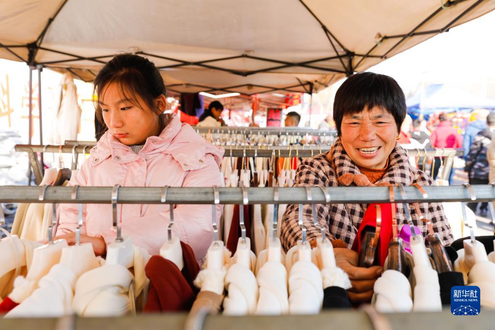 11月26日,在河南省焦作市武陟縣大虹橋鄉老城村的城隍廟會現場,人們選購冬衣。
