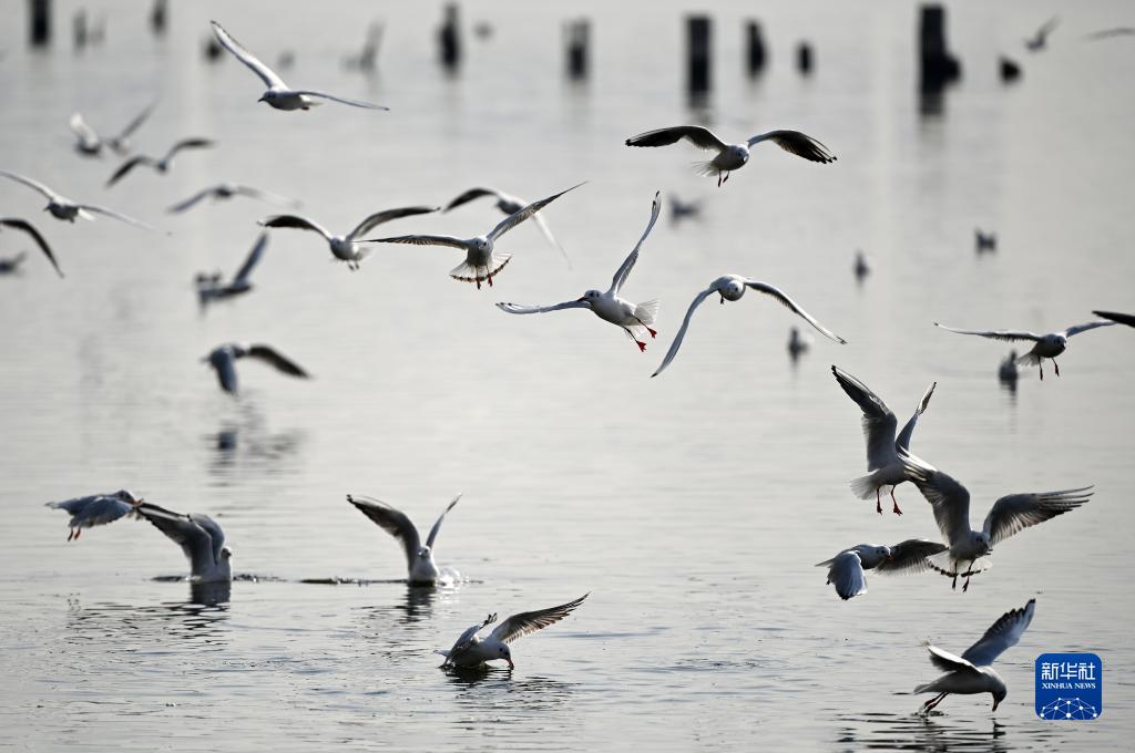 初冬時節,天津市迎來候鳥遷徙高峰期,不少海鷗從寒冷的西伯利亞遷徙到濱海新區老碼頭附近的海河岸邊越冬,吸引游人前往觀賞。