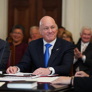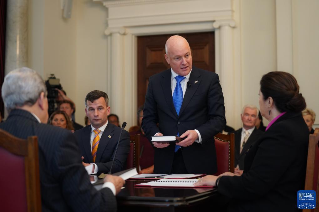 11月27日,在新西蘭首都惠靈頓,國家黨領導人克里斯托弗·拉克森(中)參加宣誓就職儀式。