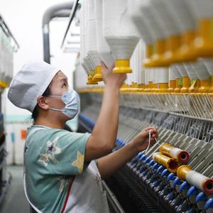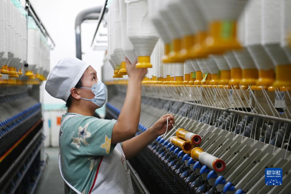 11月26日,在涇川縣一家棉紗生產企業,工人在棉紗生產線上作業。
