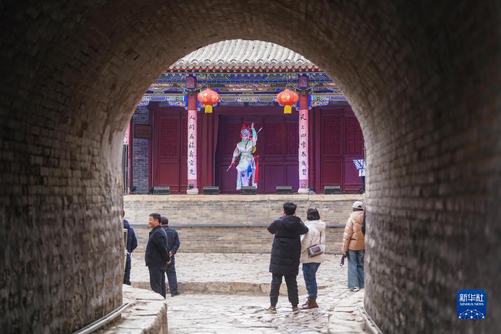 游客在蔚縣暖泉鎮西古堡村觀看蔚縣秧歌表演《扈家莊》選段(11月26日攝)。