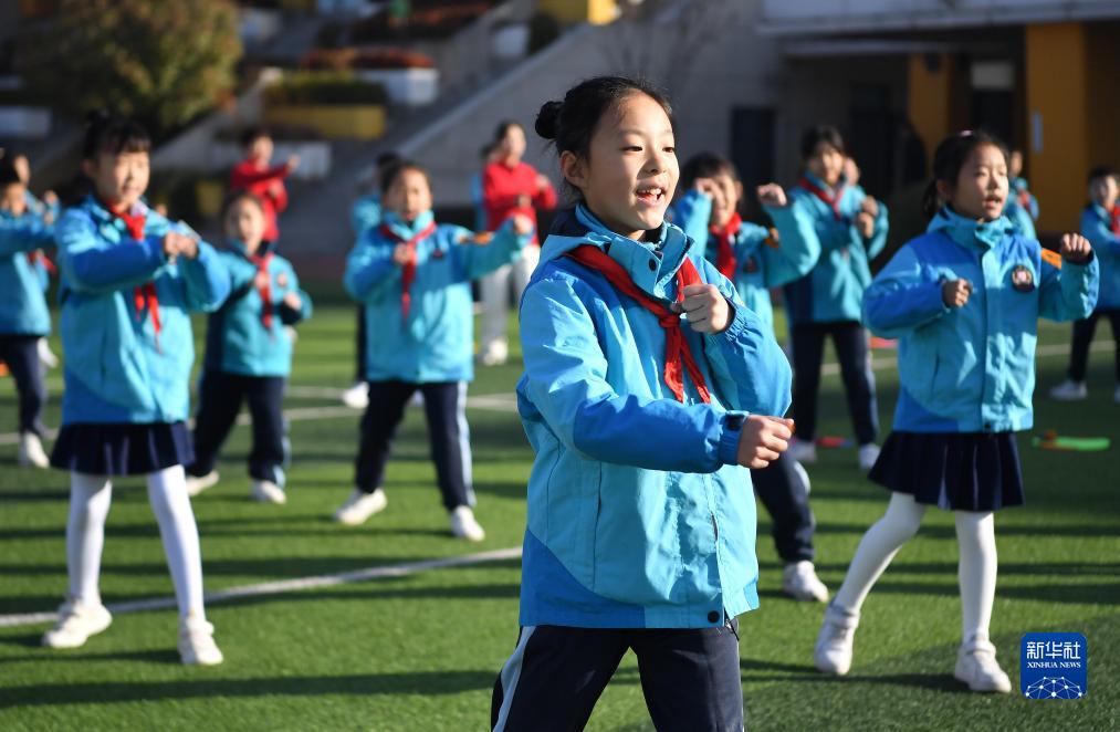 11月27日,西安市曲江第六小學學生在大課間做五禽操。