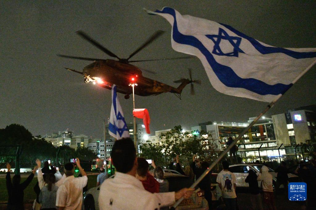 11月26日,搭載獲釋人員的直升機(jī)抵達(dá)以色列佩塔提克瓦一所醫(yī)院。