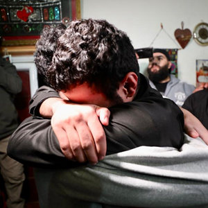 11月26日,一名被關押的巴勒斯坦人(灰衣者)獲釋后回到耶路撒冷。