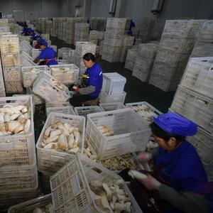 11月27日,村民在道真仡佬族苗族自治縣尹珍街道一處杏鮑菇種植基地忙碌。