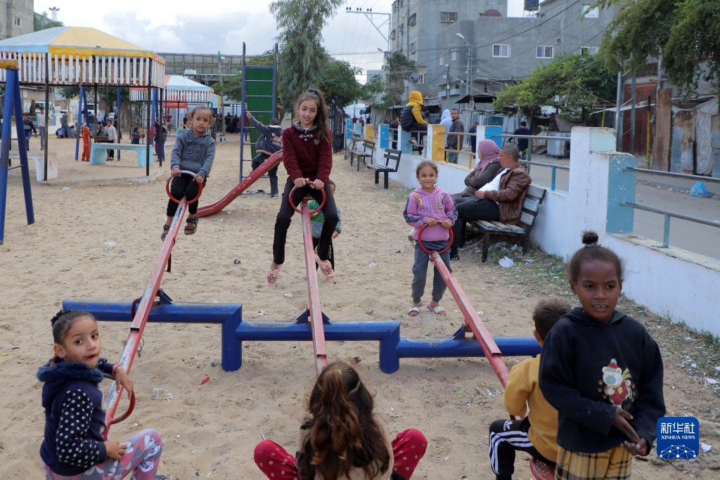 11月27日,孩子們在加沙地帶南部城市拉法一處公園玩耍。新華社發(里澤克·阿卜杜勒賈瓦德攝)
