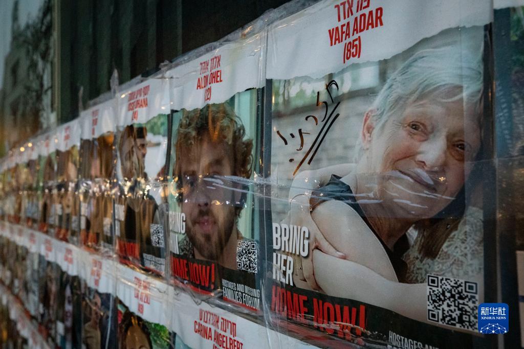 這是11月27日在耶路撒冷拍攝的被扣押人員海報,其中獲釋人員的海報上用希伯來語標(biāo)注“我回來了”。