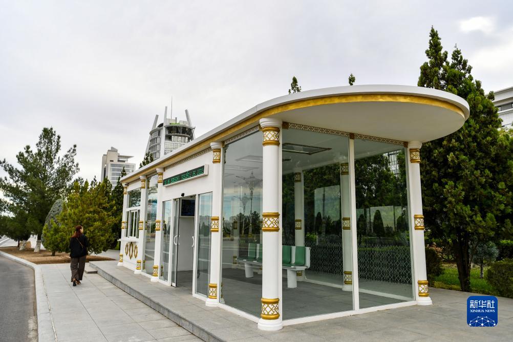 這是11月26日在土庫曼斯坦首都阿什哈巴德拍攝的公交站。