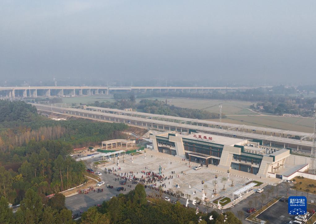 11月28日,俯瞰川青鐵路三星堆站(無人機照片)。
