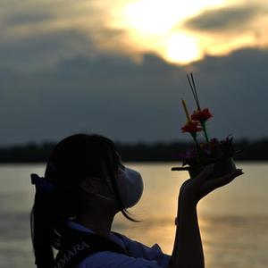 當日是泰國傳統節日水燈節,泰國民眾前往河流沿岸施放水燈,許愿祈福。