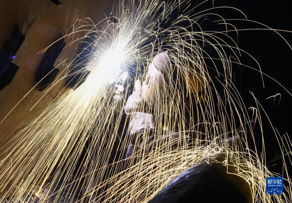 11月27日,工人在深中通道海底沉管隧道內進行切割作業(yè)。