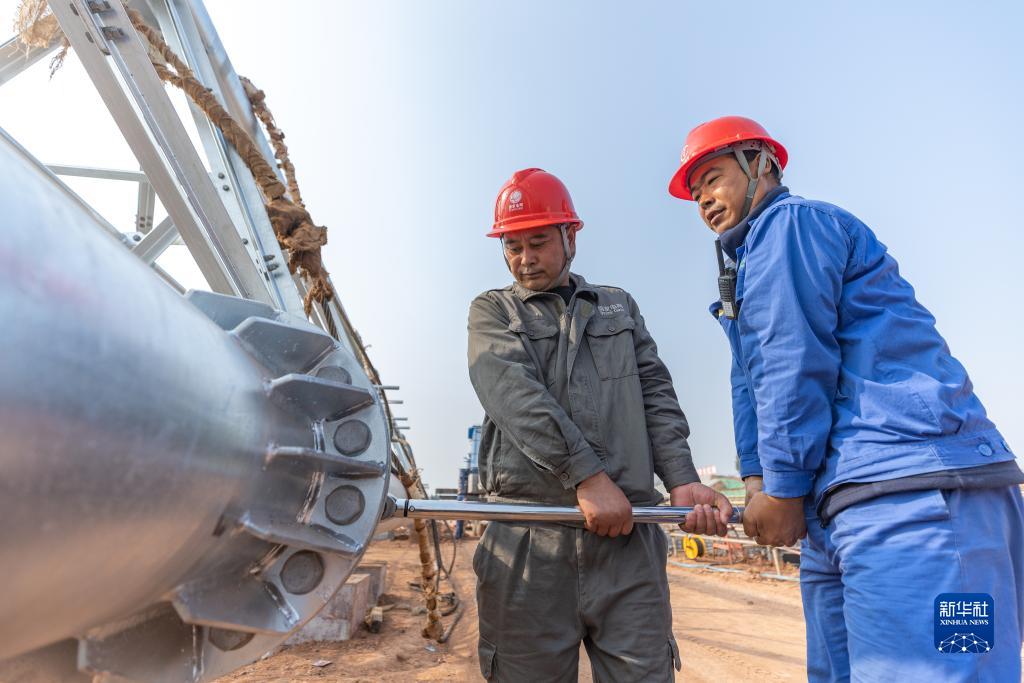 11月28日,在位于重慶市銅梁區少云鎮的銅梁1000千伏變電站施工現場,國網重慶送變電公司施工人員在吊裝前對構架梁進行檢查。