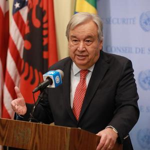 11月27日,聯(lián)合國秘書長古特雷斯在紐約聯(lián)合國總部向記者講話。