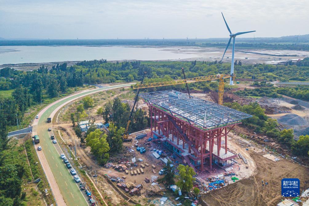 11月26日在海南省儋州市拍攝的建設(shè)中的“火山海岸”驛站和海南環(huán)島旅游公路(無(wú)人機(jī)照片)。