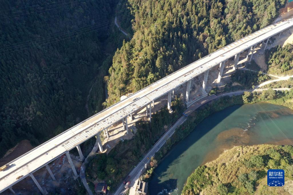 這是建設中的廣西龍勝各族自治縣境內的龍勝至城步高速公路(無人機照片,11月28日攝)。