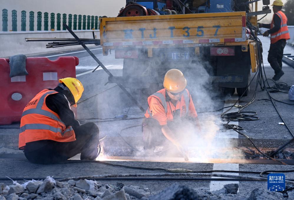 濟曲快速路上跨京滬鐵路立交橋連續梁轉體成功