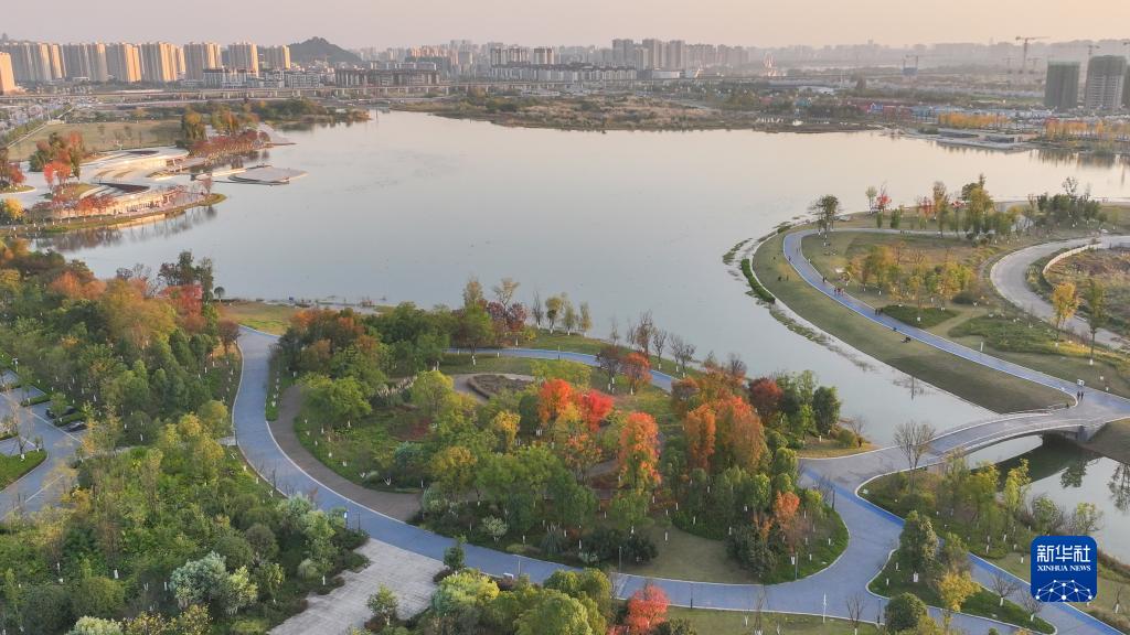 11月27日拍攝的四川省遂寧市永盛湖公園(無人機照片)。