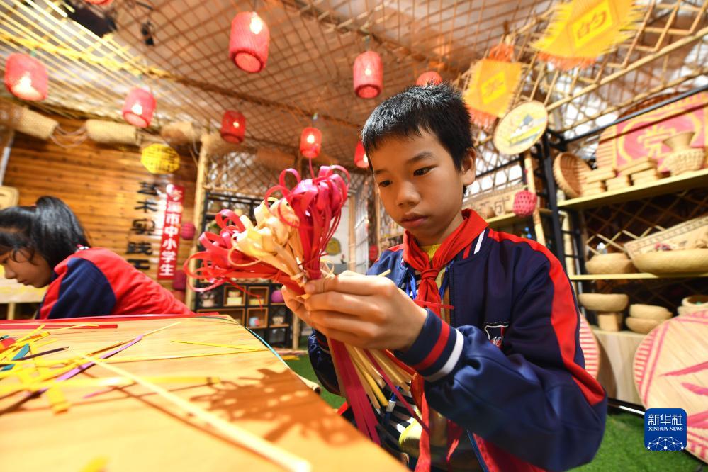 近年來,廣西岑溪市南渡中心小學將當地非遺項目——竹芒編織技藝引進課堂,打造特色校園文化,豐富學生課外生活。
