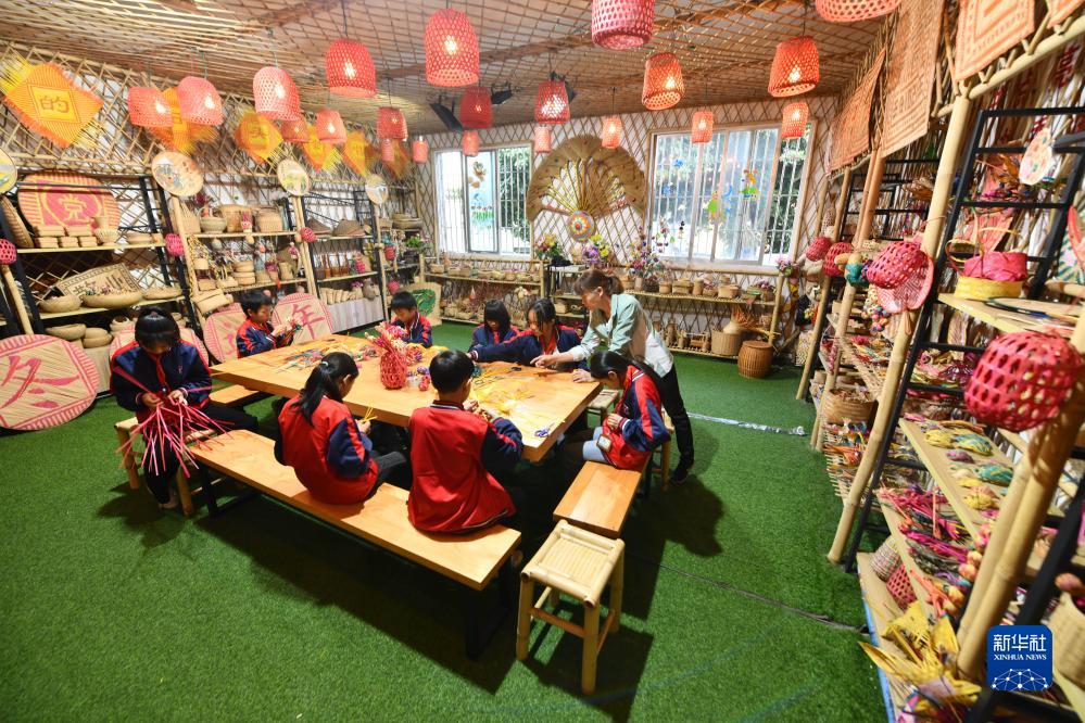 近年來,廣西岑溪市南渡中心小學將當地非遺項目——竹芒編織技藝引進課堂,打造特色校園文化,豐富學生課外生活。