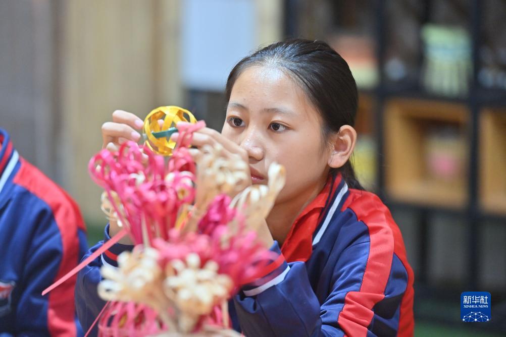 近年來,廣西岑溪市南渡中心小學將當地非遺項目——竹芒編織技藝引進課堂,打造特色校園文化,豐富學生課外生活。