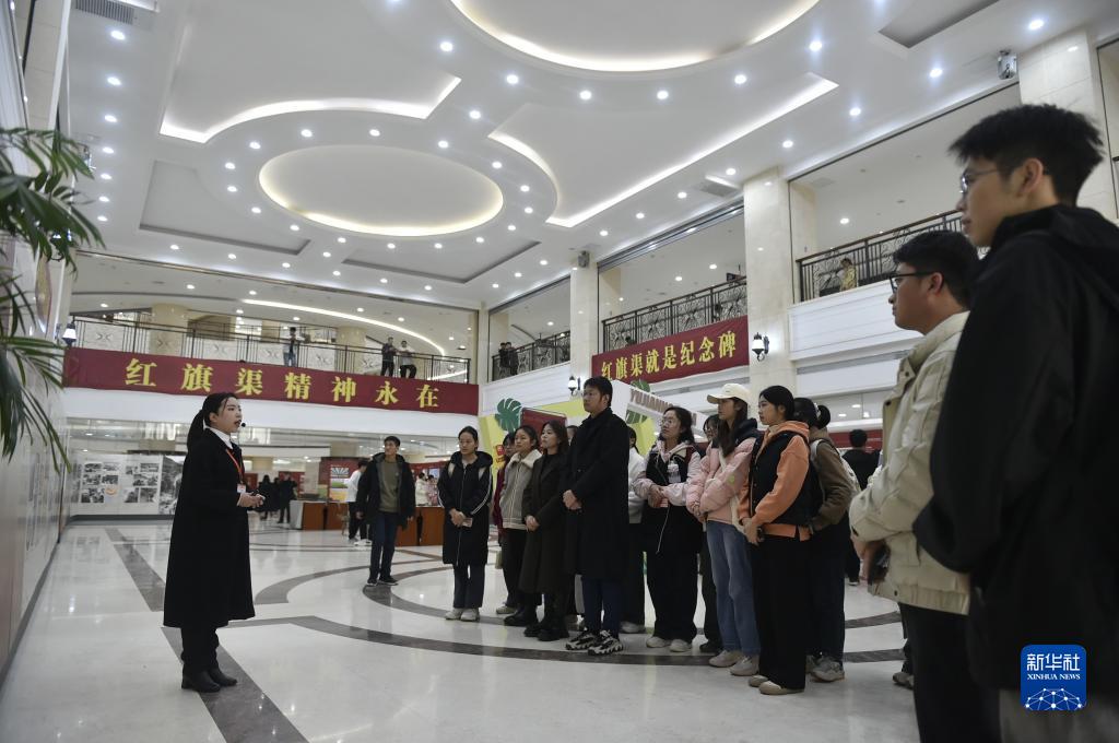 11月28日,河南農(nóng)業(yè)大學的學生在參觀紅旗渠精神主題展覽。