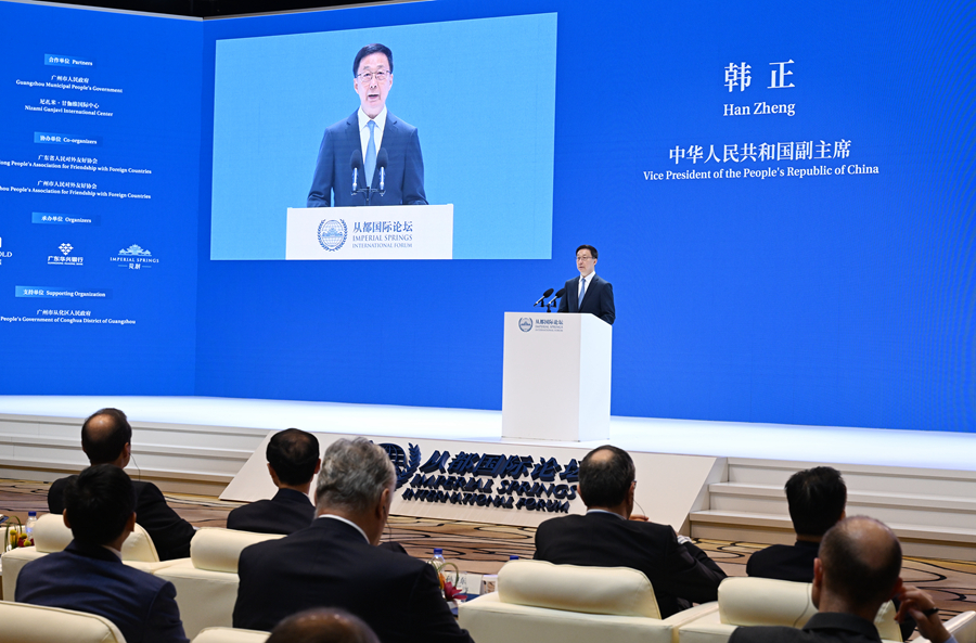 12月4日,國家副主席韓正在廣州出席“2023從都國際論壇”開幕式并致辭。論壇首先宣讀了習近平主席賀信。