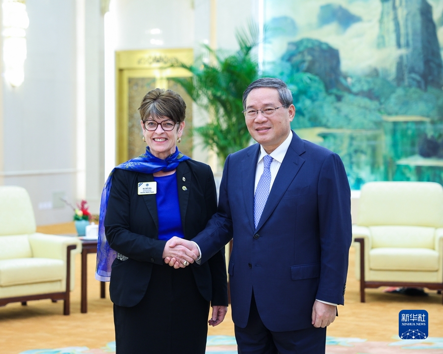12月10日上午,國務院總理李強在北京人民大會堂會見國際獅子會會長希爾一行。