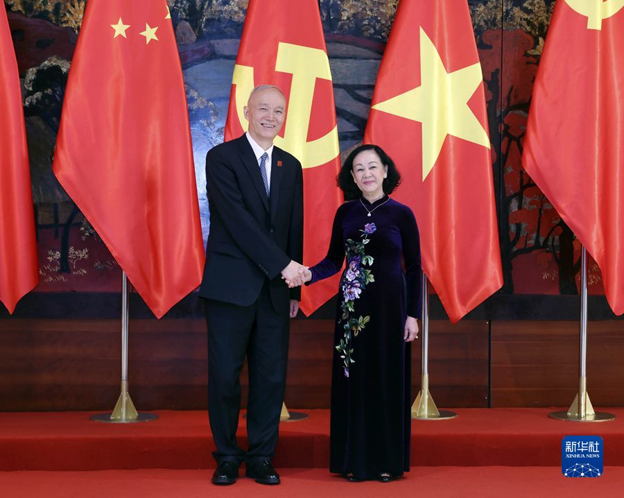 12月12日,中共中央政治局常委、中央書記處書記蔡奇在河內同越共中央政治局委員、中央書記處常務書記張氏梅舉行會談。