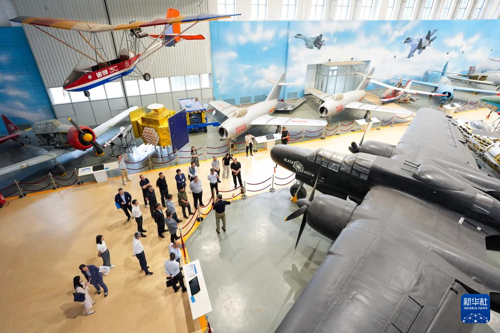 5月10日,参观者在位于北京航空航天大学的北京航空航天博物馆参观展出的歼-10A(左下)。