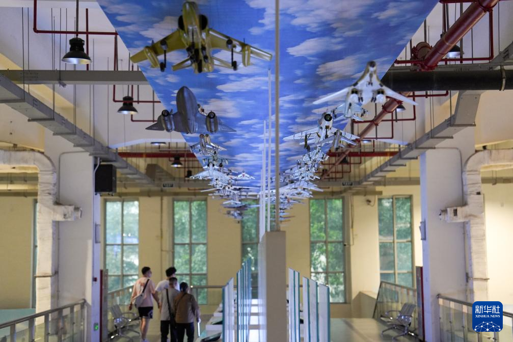5月10日,在位于北京航空航天大学的北京航空航天博物馆内,参观者在空天走廊展区参观。