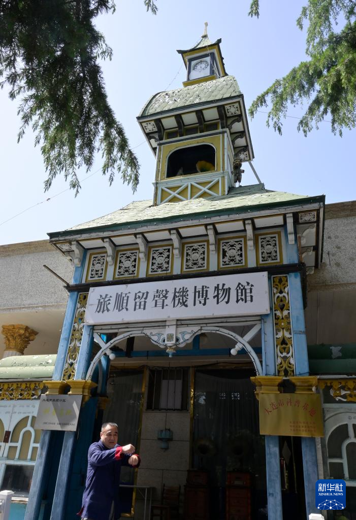 5月17日,老馆长王心伟在旅顺留声机博物馆向游客介绍留声机。