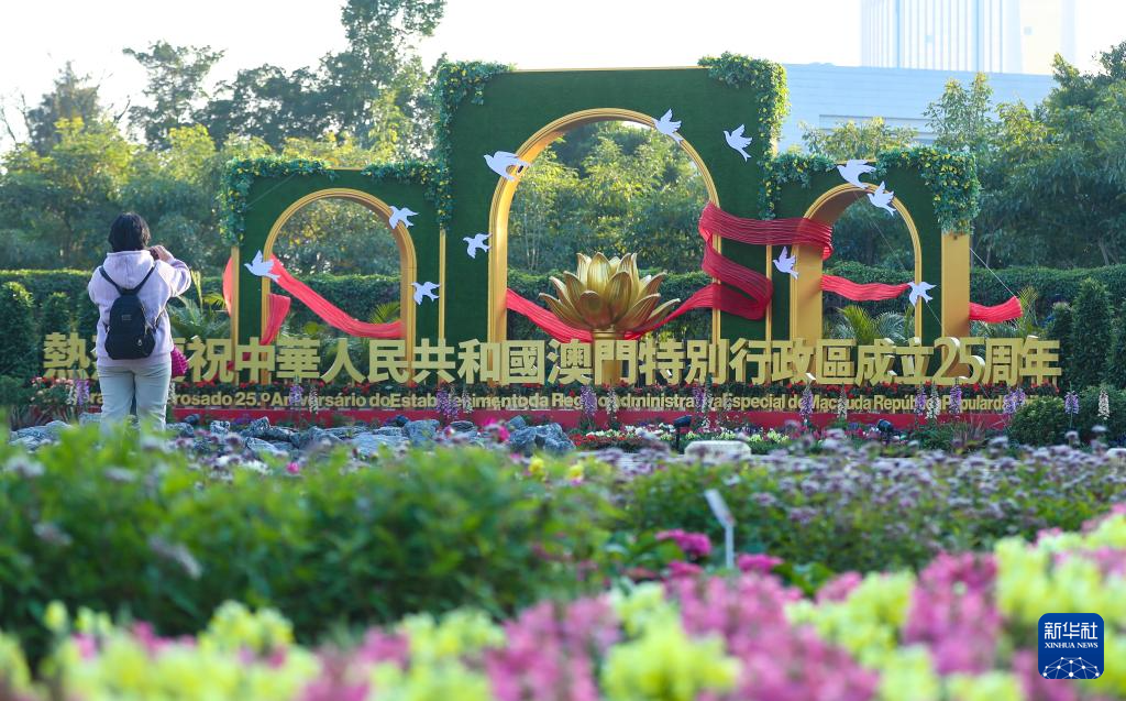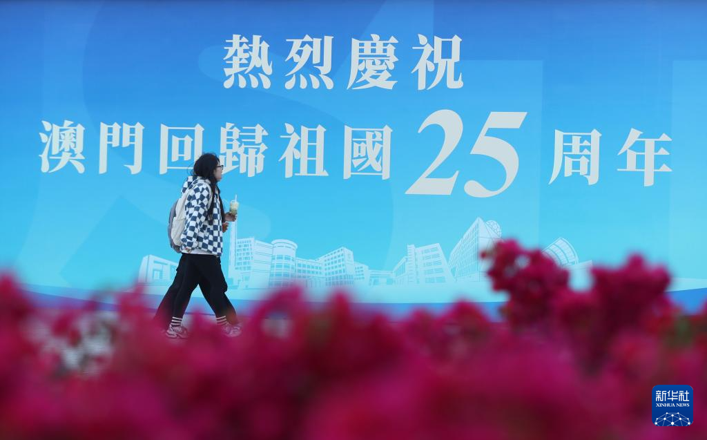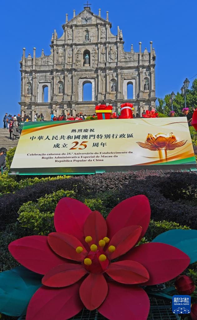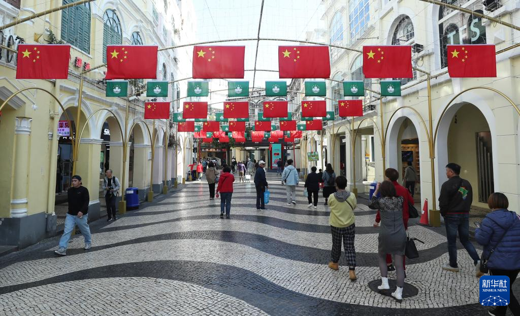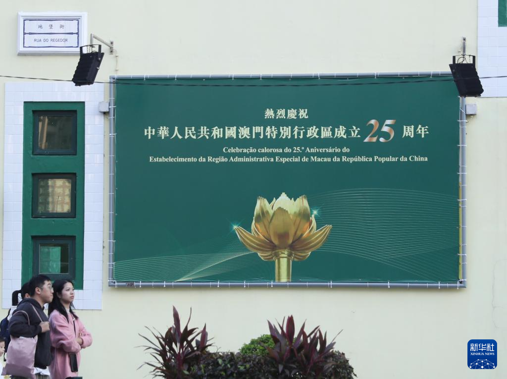 回归祖国25周年前夕,澳门街头装扮一新,洋溢着喜庆气氛。