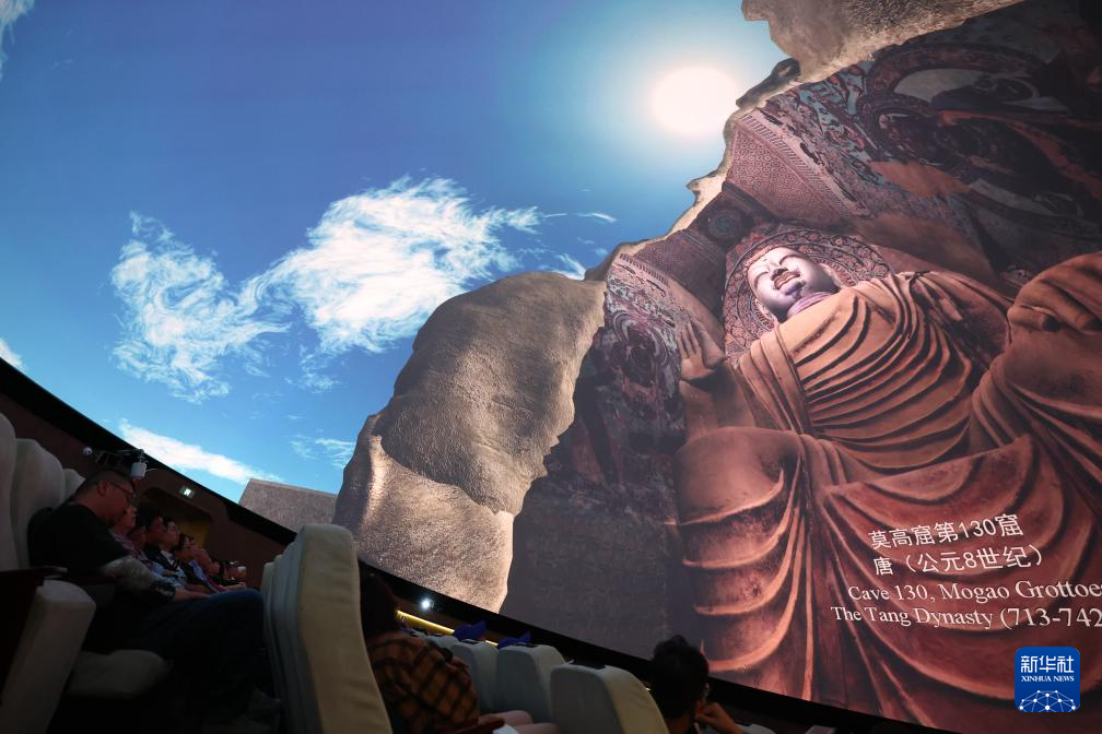 2024年9月4日,游客在莫高窟数字展示中心观看球幕电影《梦幻佛宫》。