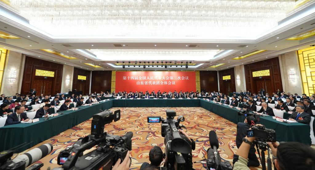 3月6日,十四届全国人大三次会议山东代表团举行开放团组会议。