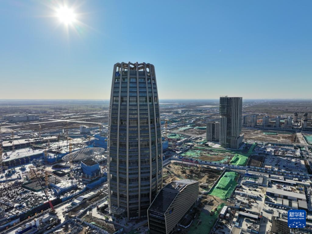 位于雄安新区启动区内的中国中化大厦建设现场(1月9日摄,无人机照片)。