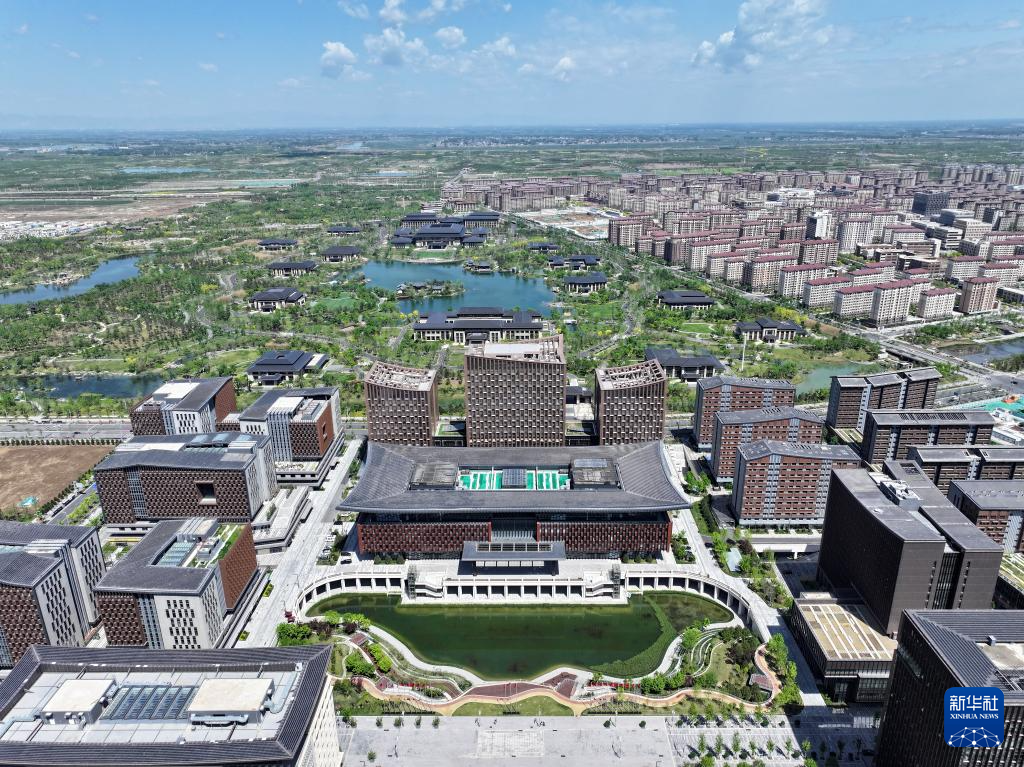 雄安新区商务服务中心(2024年4月23日摄,无人机照片)。