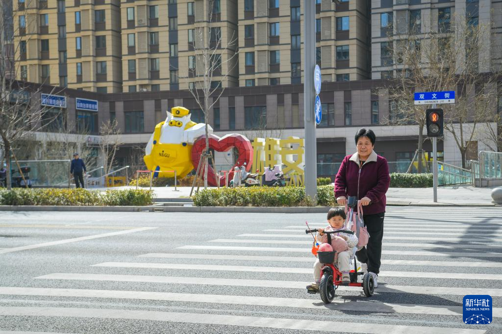 3月12日,居民在雄安新区容东片区道路上行走。
