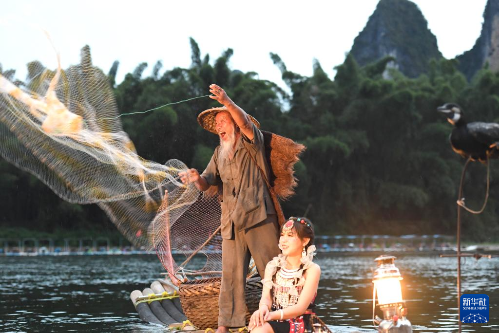 桂林的环城水系,没有大江大河的波涛汹涌,江面澄静,倒影迷人。曾经的渔民,如今在这里当起了“演员”,用竹篙将鸬鹚轻轻抛起,为游客演绎古老的捕鱼术。
