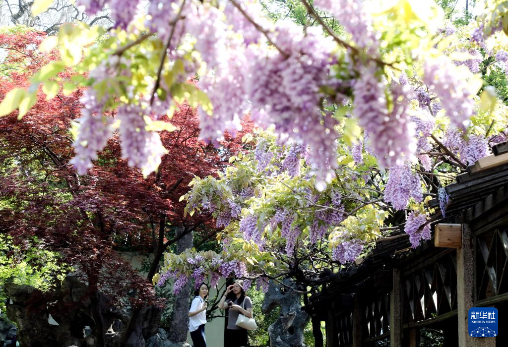 4月8日,游客在江苏苏州狮子林赏花游玩。