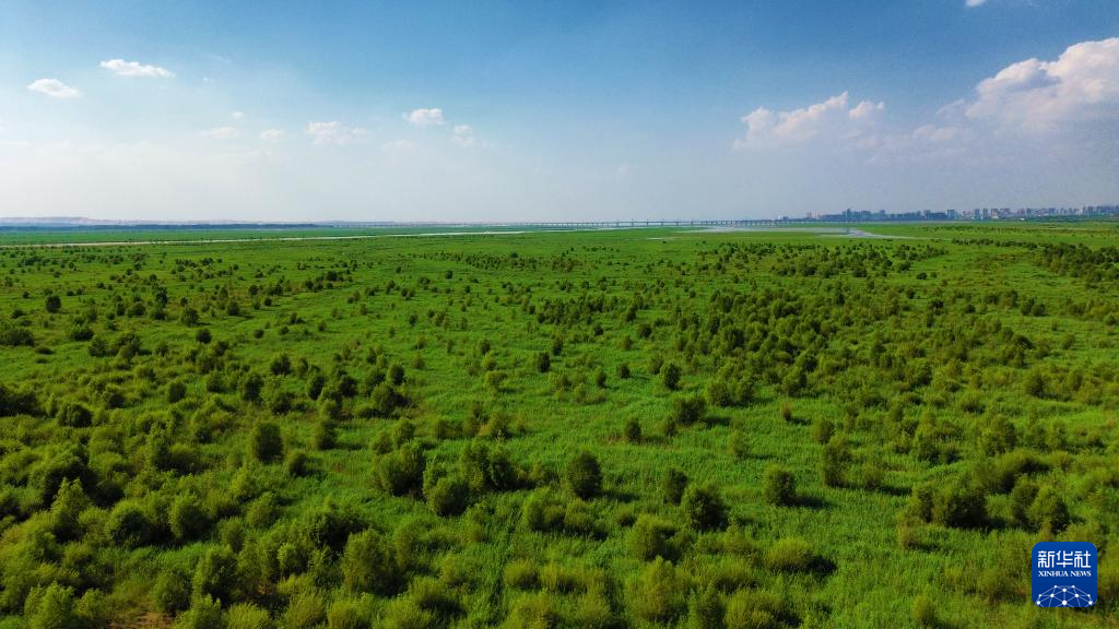 这是生机蓬勃的乌海湖湿地(无人机照片,2024年7月13日摄)。
