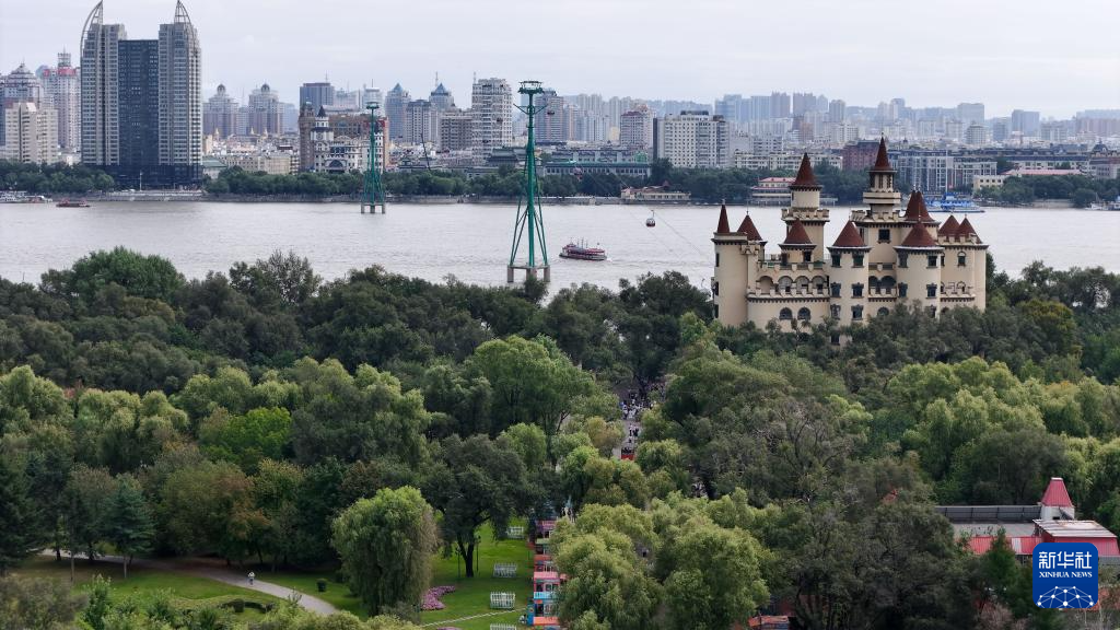 位于松花江畔的哈尔滨大剧院(2022年9月26日摄,无人机照片)。