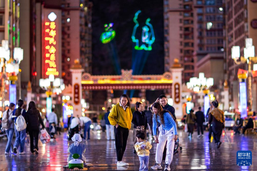 这是昌都市茶马广场附近的缘来夜市(6月21日摄)。