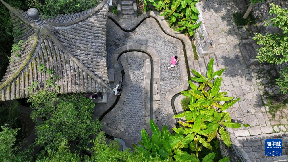 游客在滁州市皇甫山国家森林公园漂流(2024年5月19日摄,无人机照片)。