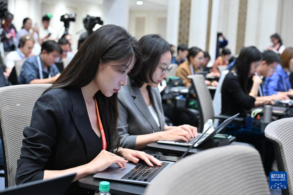 9月22日,国务院新闻办公室在北京举行“高质量完成‘十四五’规划”系列主题新闻发布会,中国人民银行行长潘功胜,金融监管总局局长李云泽,中国证监会主席吴清,中国人民银行副行长、国家外汇局局长朱鹤新介绍“十四五”时期金融业发展情况,并答记者问。这是记者在现场工作。